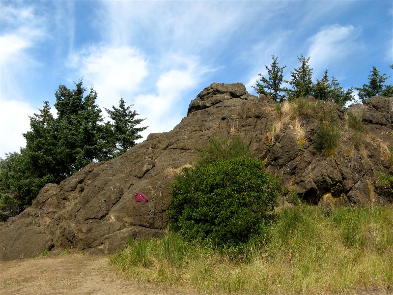 They are right in front of this rock which people climb, though they are not supposed to climb it.