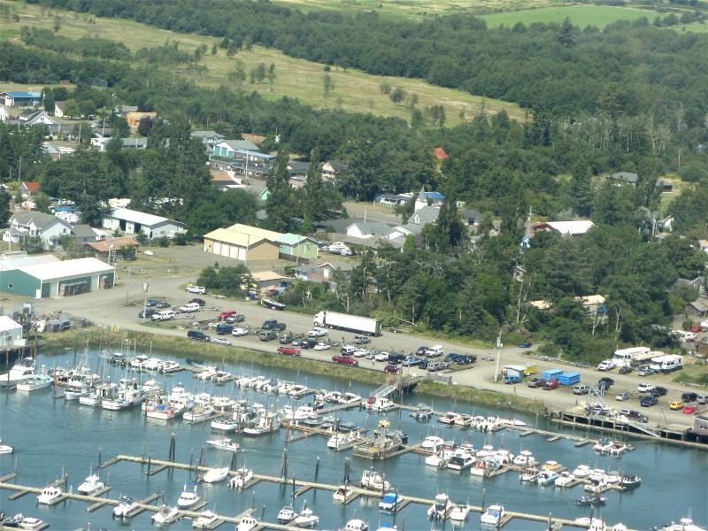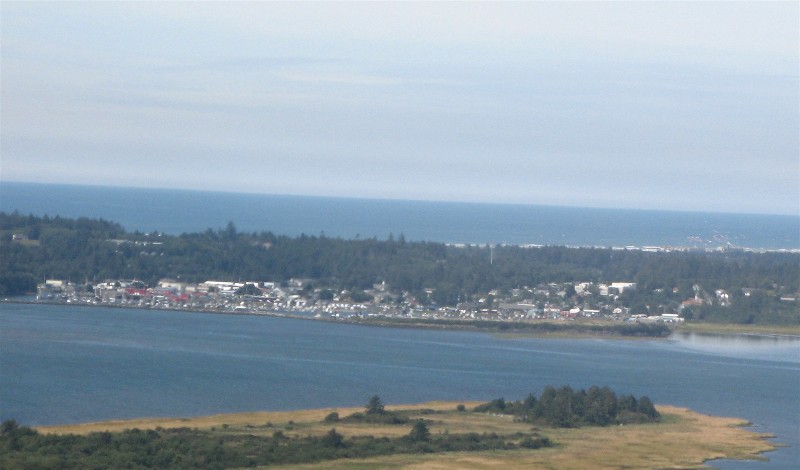 Ilwaco with the peninsula behind and the Pacific Ocean: