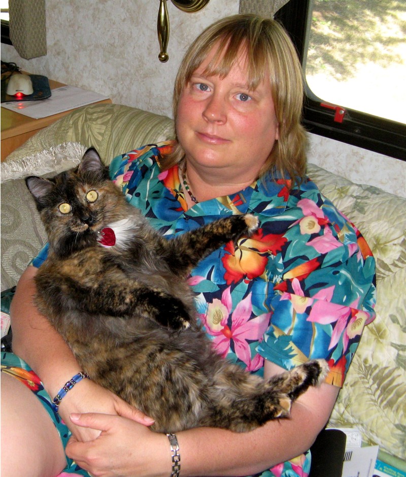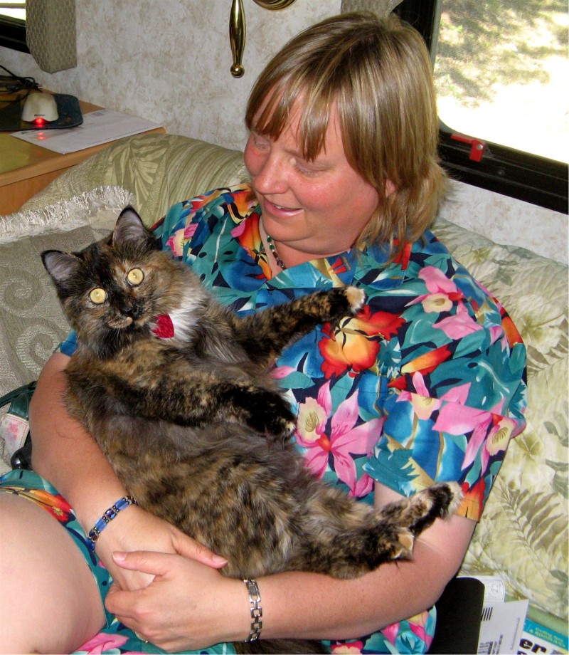 Evita looking cute in the motorhome. She knows how to keep her cushy lifestyle.