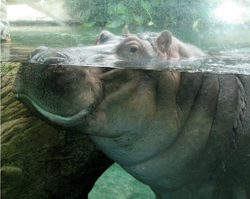 Hippopotamus right by the glass watching us: