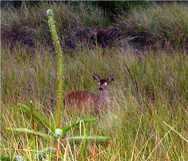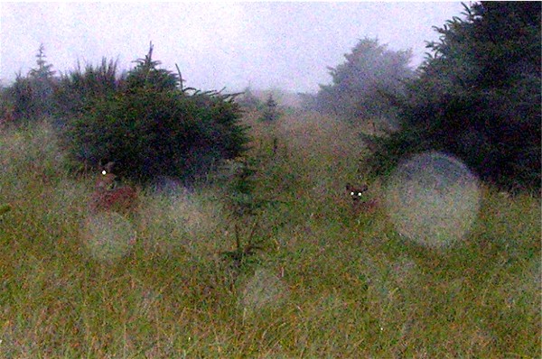 We again walked out to the ocean but this time in fog. We had the company of deer, which just show up in these enhanced photos: