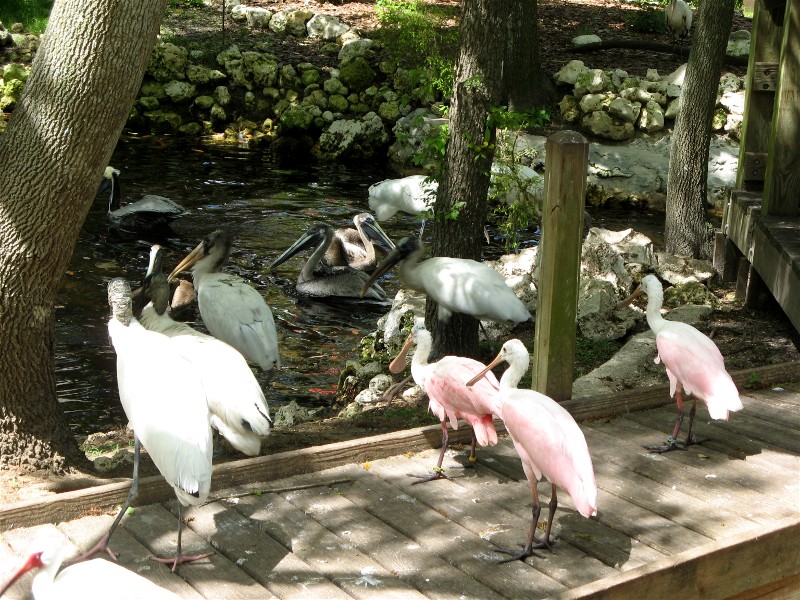 Flamingo, brown pelican, storks, ibis and spoonbills:
