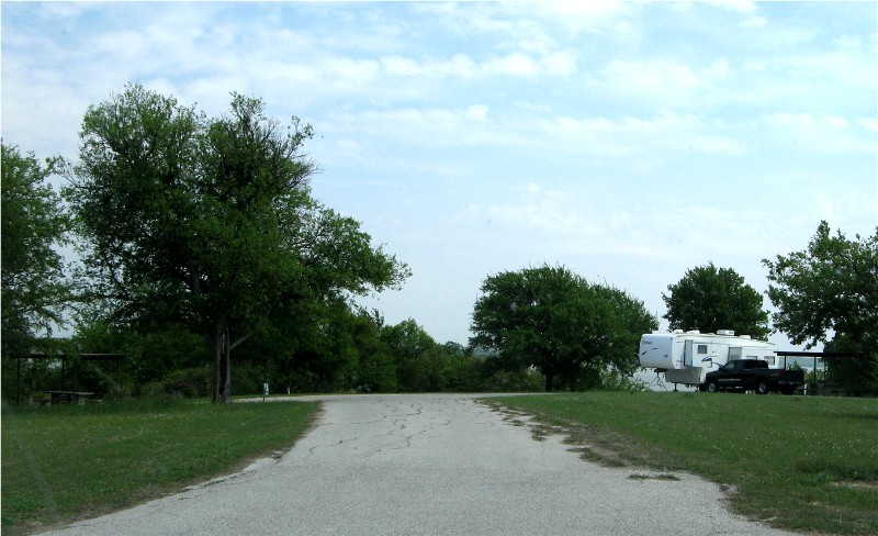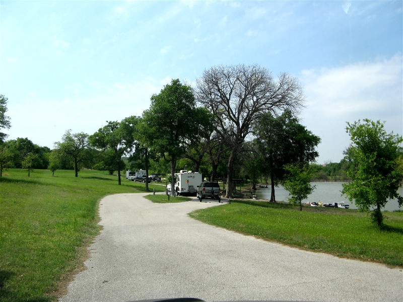Our other camping choice was the Corps of Engineers park on Benbrook Lake which we drove through to check out later. Nice locations but not very level campsites.