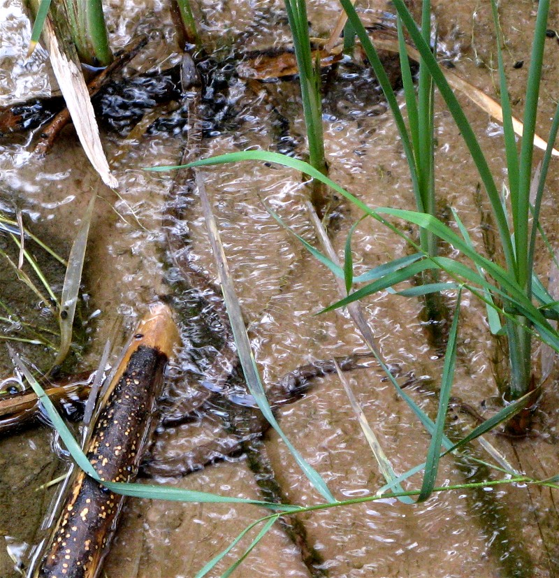 Others noticed a snake in the water fishing. Can you see the snake?