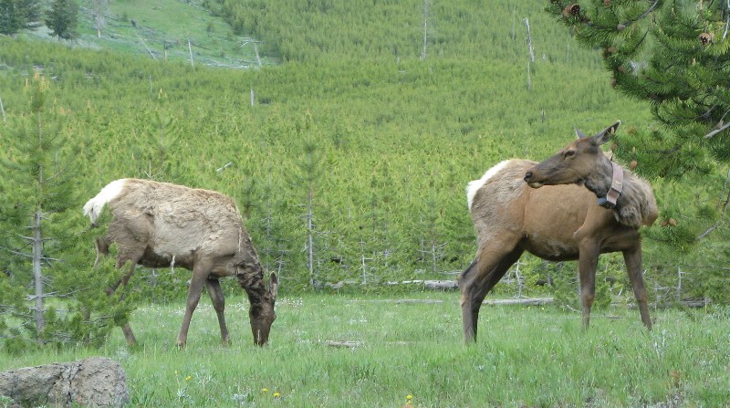 An elk with radio collar: