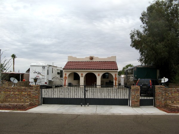 We pulled out of Mesa on November 24th heading to Yuma. We topped off the motorhome fuel and then headed south to Gila Bend to meet up with I-8. We stopped and had lunch in the Gila Bend Elks lodge parking lot, where Bill is a member. Then off we went to Yuma to stay with our friends Dan and Jenny on their lot. We last stayed on their lot in February 2007, but they were not there then and they had since added a casita.