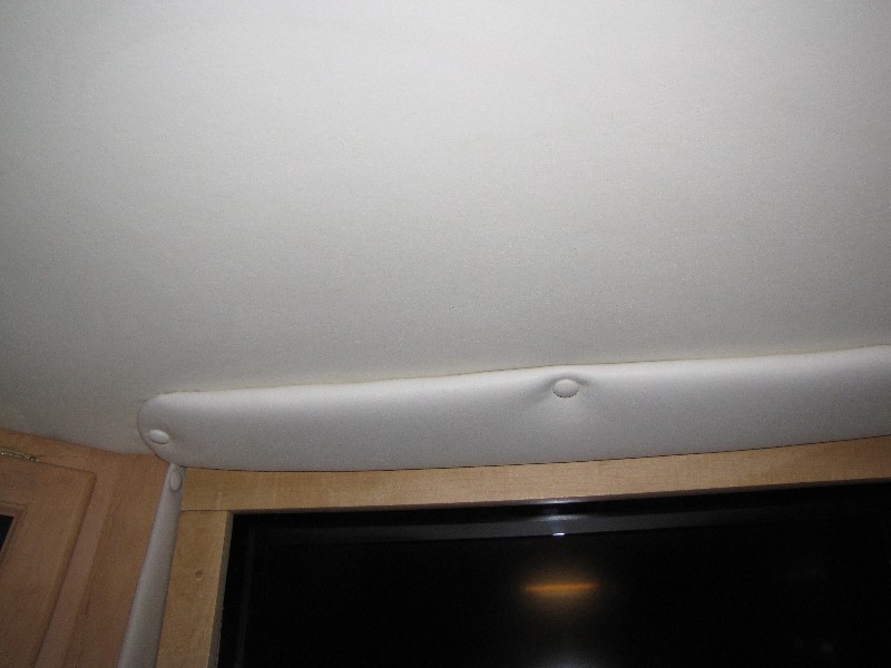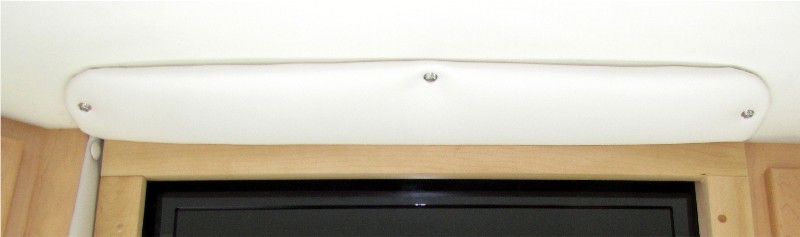 We are getting some remodeling done to the front for an LCD HDTV and much wider sun visors. Here is how it looked before the remodel with the two power sun visors at their lowest position.