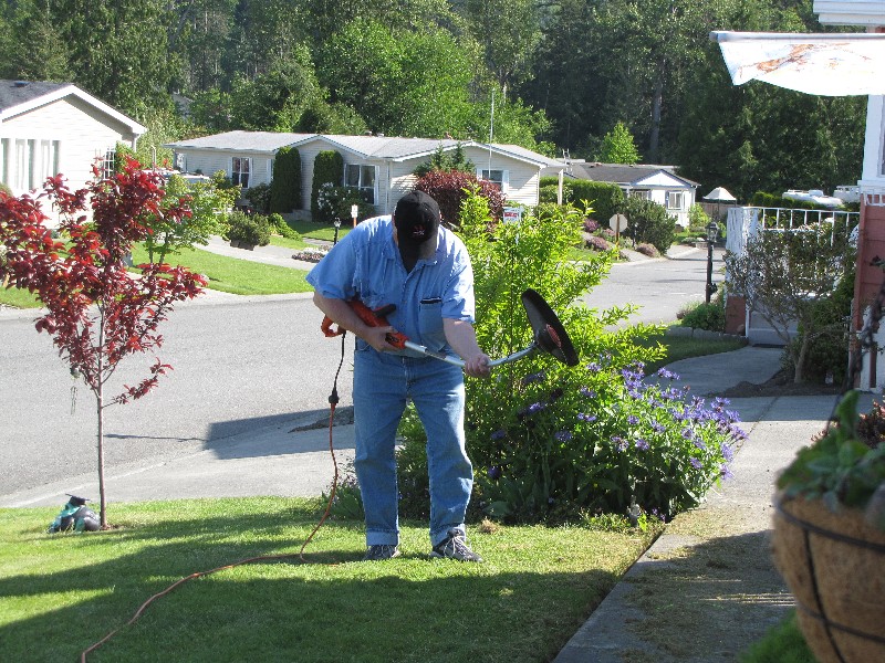 Dick trying out his new weed eater.