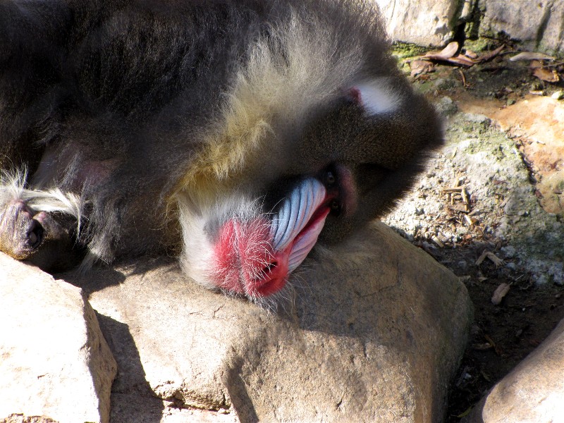 Again we managed to get a good photo of the mandrill's head. We did not get a good photo of its colorful rear end.