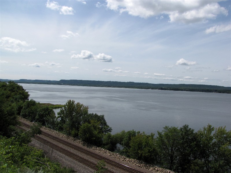 Once in Wisconsin we followed SR35, the Great River Road/Wisconsin south. Every once in a while we would see the river, like at this rest area: