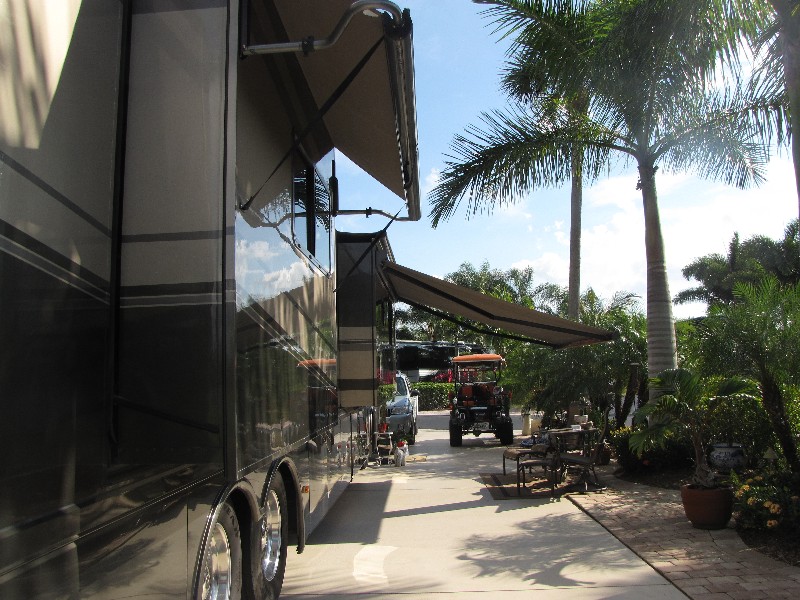 We left Bushnell on a hot December 9th and worked our way to the Florida Toll Road. It was hot enough to run the generator and air conditioning while having lunch at a service plaza. We got off the toll road after paying $17 in tolls, fueled up and headed to the PSL RV Resort in Port Saint Lucie. We put 183 miles on getting here. We chose this campground since our friends Rich and Diane were camped here for the winter.
