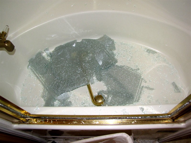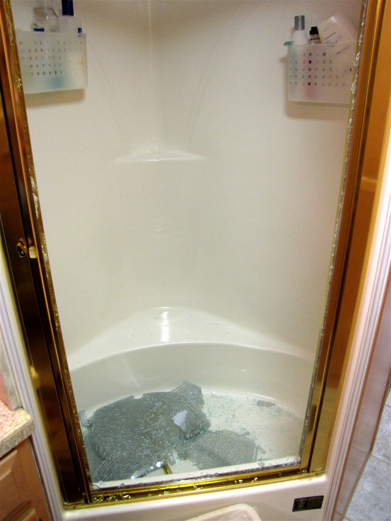 July 7th Diane slipped in the bathroom and somehow shattered the shower door. Luckily she only had some small cuts from the ordeal.