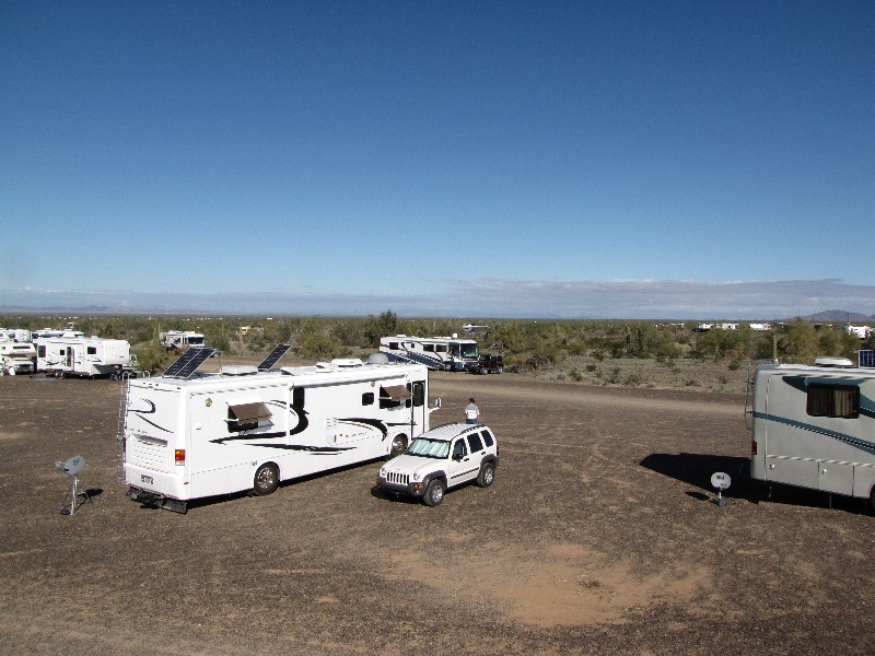 This day the sun was shining and our solar panels were able to top off our batteries. Bill took to the roof to take some photos.