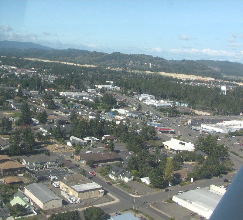 US101 and OR126 interchange in Florence from the air just before we land.