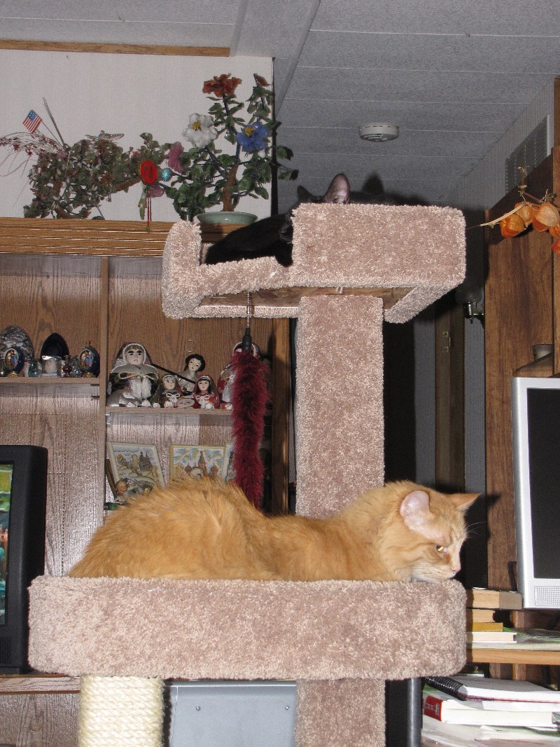 And after a couple hours both cats enjoyed it. Meesha is much larger than Zeena, but Zeena is in charge.