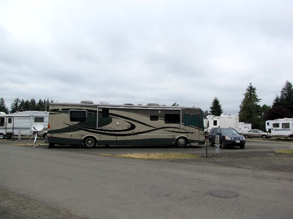 We hit some construction zones and stopped to fuel up in Tacoma, but after 222 miles we were camped at Outback RV Park in Rochester, WA again. Our last visit was in May.