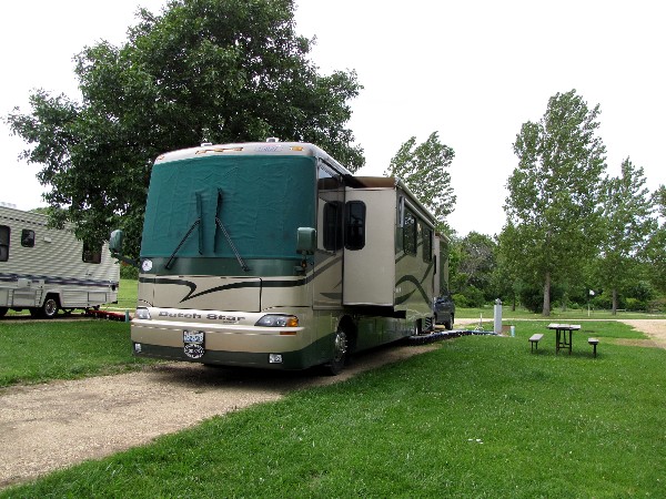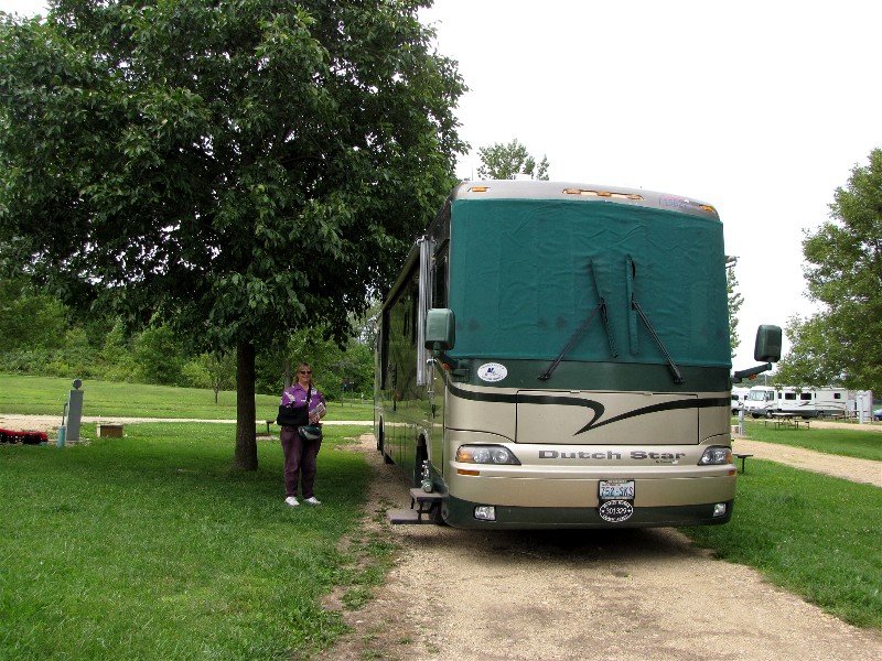 We left Elkhart on August 18th and headed into Illinois, planning on staying the night in Utica, IL. We took the toll road and got to Utica earlier than we wanted to stop so we headed north intending to stay at the state park by Rockford, IL. The toll road past Rockford was under construction and we just wanted to finish it so we headed into Wisconsin to camp. Plus we were done with toll roads which totaled $15.30 for our four axles. We ended up at Hidden Valley RV Resort in Milton, Wisconsin in a large water and electric site after 287 miles. It was a nice spot but expensive and you could hear the interstate from the campsite.