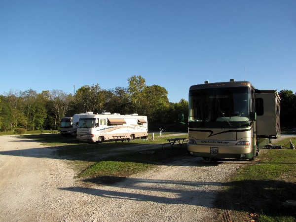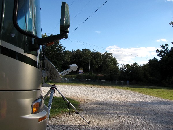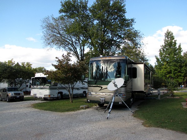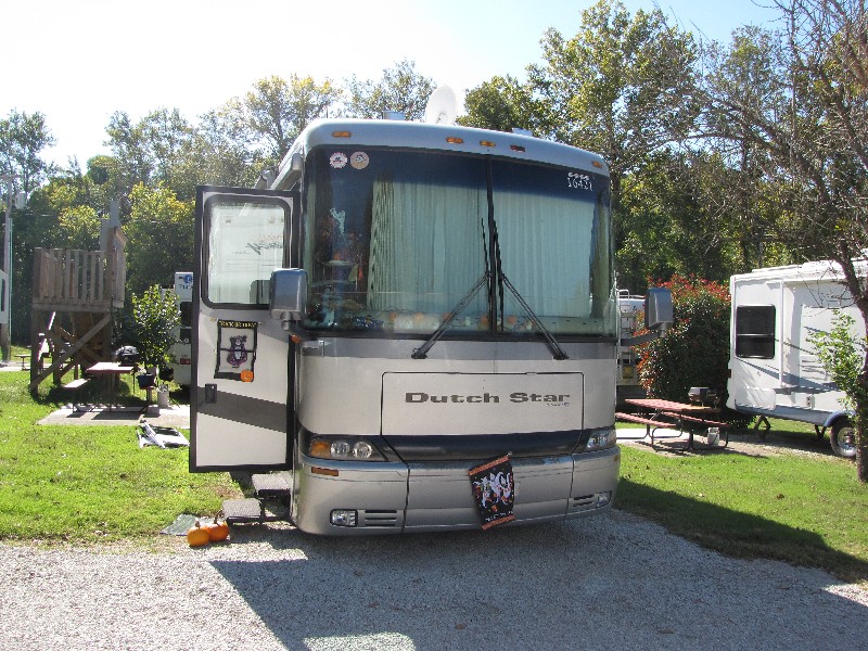 October 2nd we drove 214 miles to Turkey Creek RV Village Escapees park in Hollister, MO, just across Turkey Creek from Branson, Missouri. Here is our campsite.
