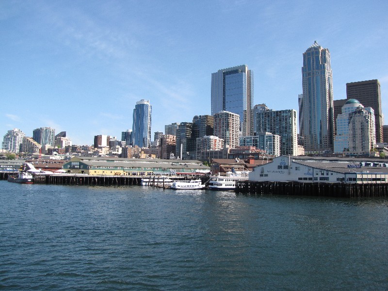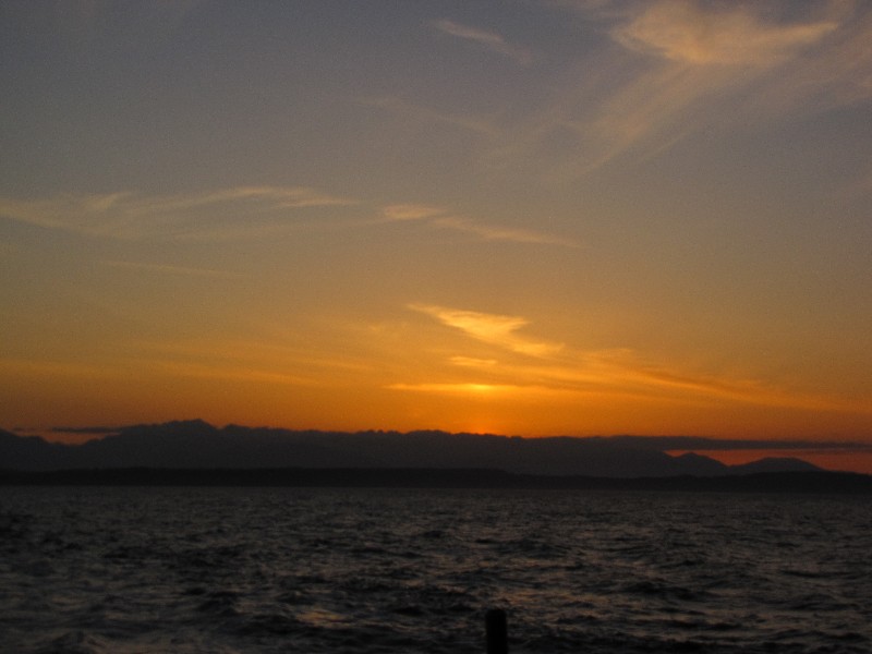We left just before sunset. Here we are on the ferry heading out of Bainbridge Island towards Seattle.