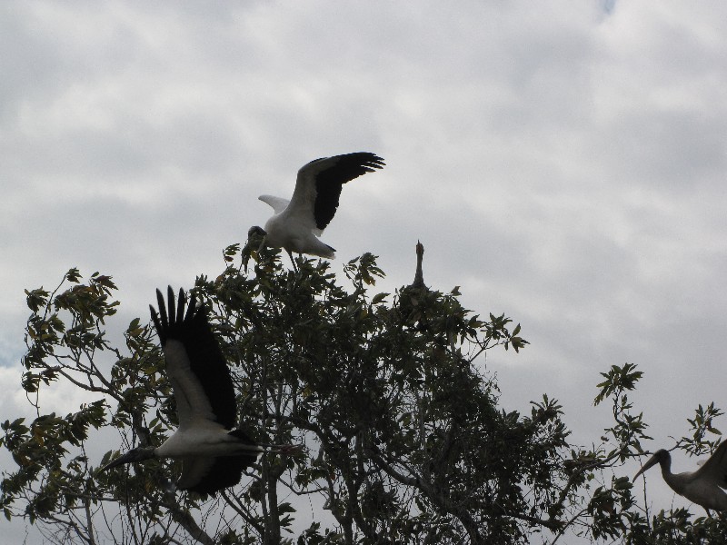 Wood storks nesting.