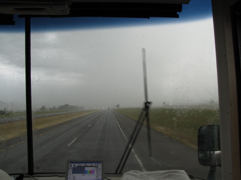 No hail, but it was windy, very wet and everyone slowed to 5mph during the worst of it. The engine got wet enough our tachometer stopped working a couple times.