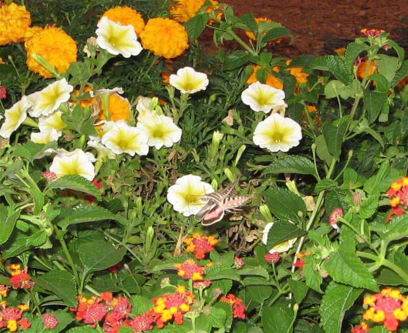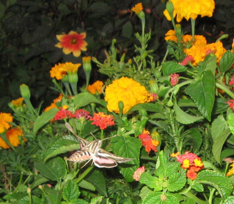 See the Hummingbird Moth (also called a Sphinx Moth) in the next two photos?