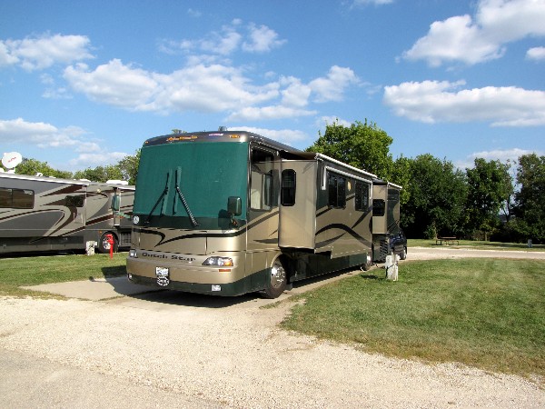 August 27th we headed east 131 miles to Newmar Corporations Service Center in Nappanee, IN. Our last stay here was in October 2006. We were in this same campsite in October 2005.