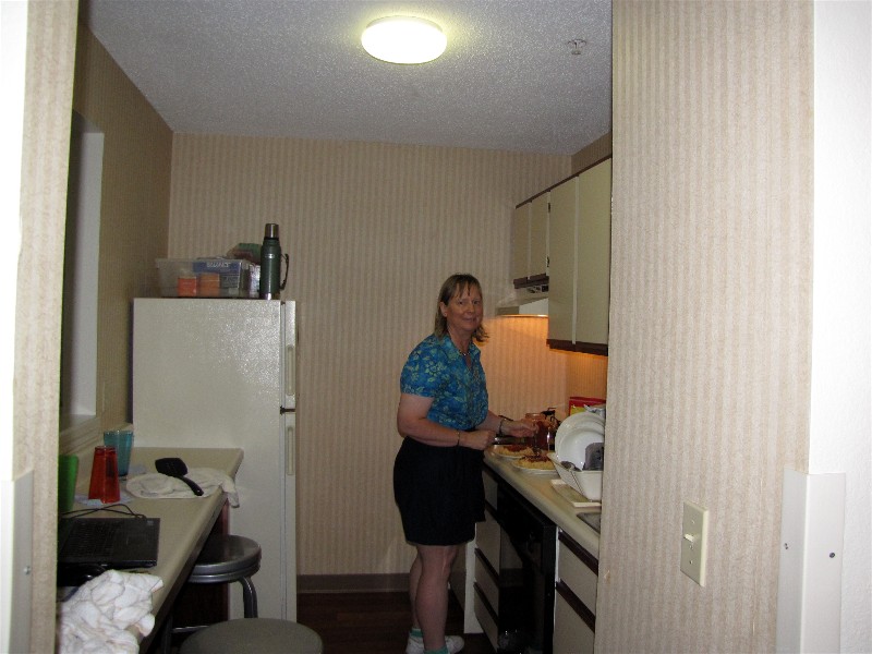 We have a full kitchen and here is Diane making dinner.
