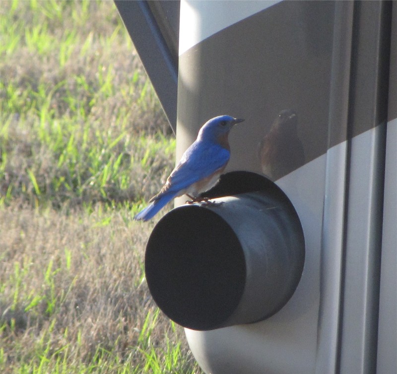 February 6th was a nice day. We enjoyed watching this eastern bluebird challenge his reflection on our neighbor's motorhome.
