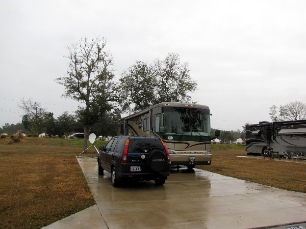 On February 1st we broke camp between rain showers, drove north with periods of rain, clouds, showers, and drizzle and after 248 miles we were camped at Wilderness RV Park Estates where we set up between rains. Our last stay here was in March 2008. This time we were in the new section with larger sites.