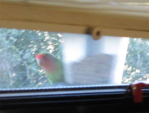 Leaving in the morning of the 15th the Peach-faced Lovebirds finally found our feeder and all we got was this lousy photo.