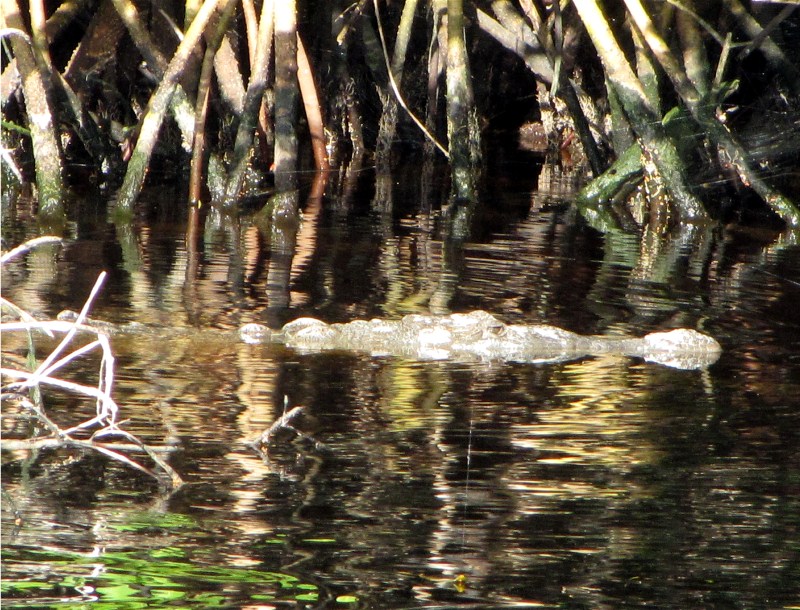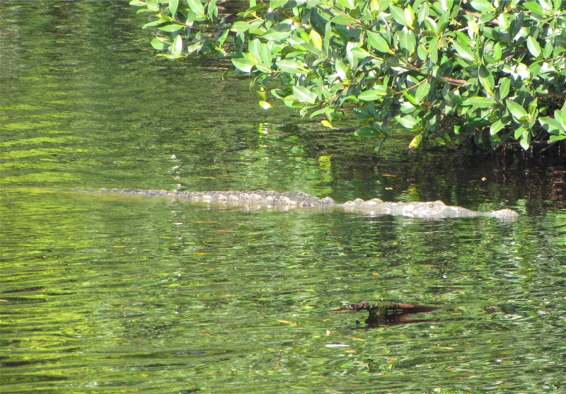 We were excited to see an American Crocodile in the canal, but taking photos was difficult due to the bright sun.