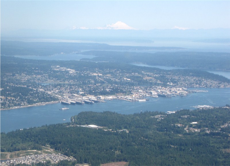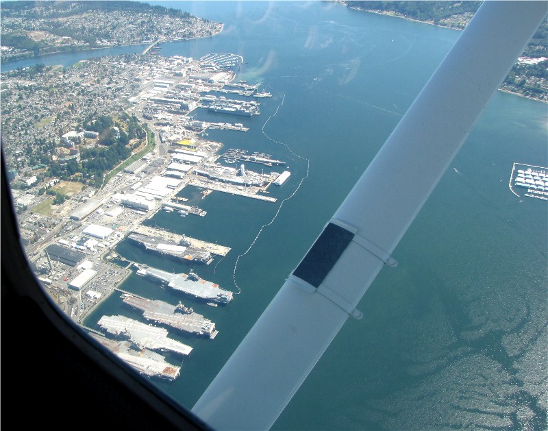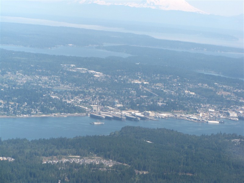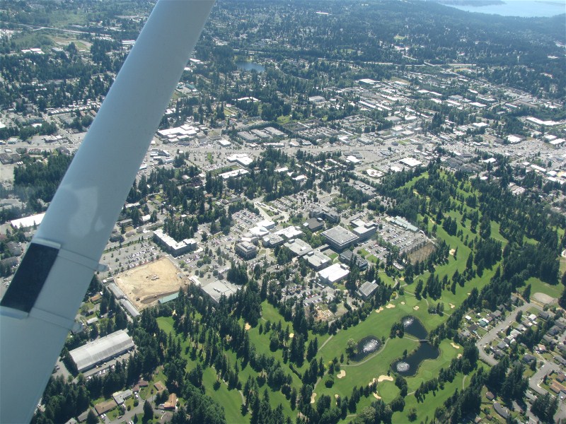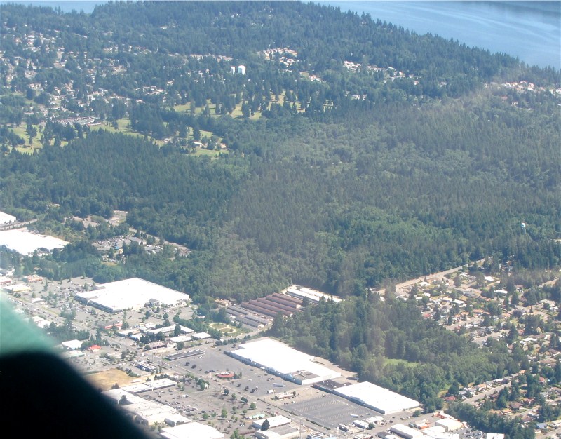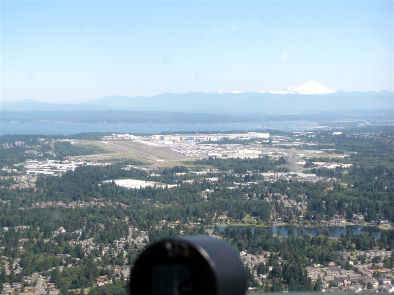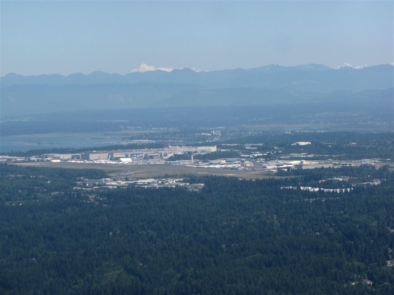 Coming in for a landing with Mount Baker in front of us and the Boeing Everett Plant to the east (right) of the airport.