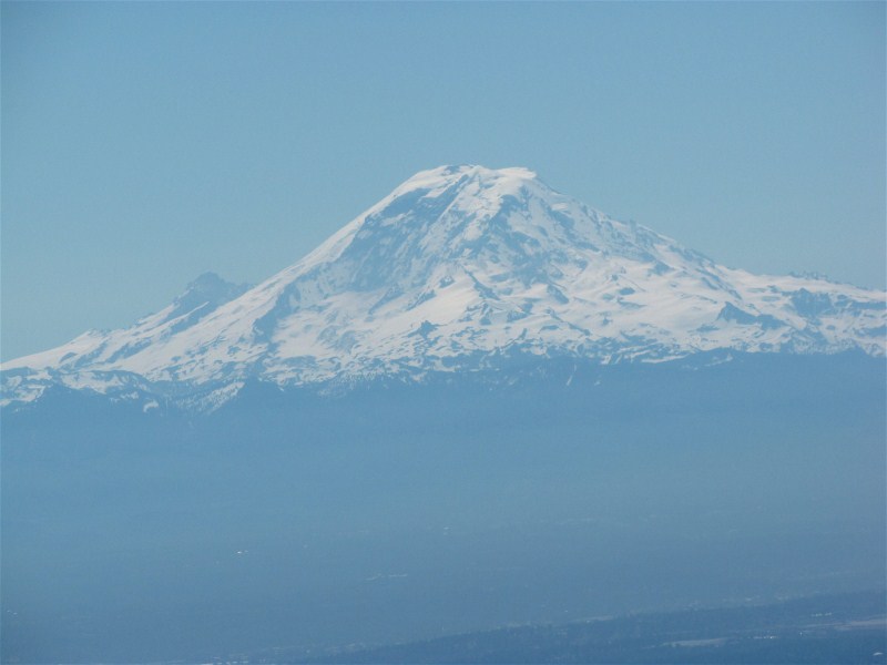 Mount Rainier is looking different from this angle. This is more like Seattle's view of the mountain, they don't see the three peaks.
