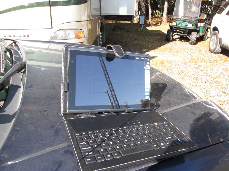 What is that thing on the roof of our car? It is our new Acer Iconia A500 tablet computer with a case/keyboard combination.