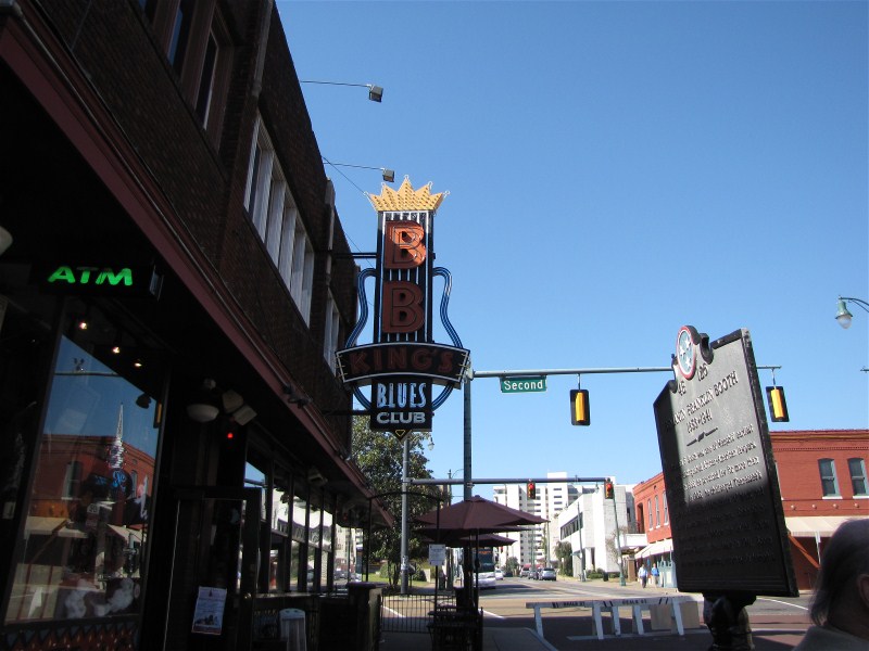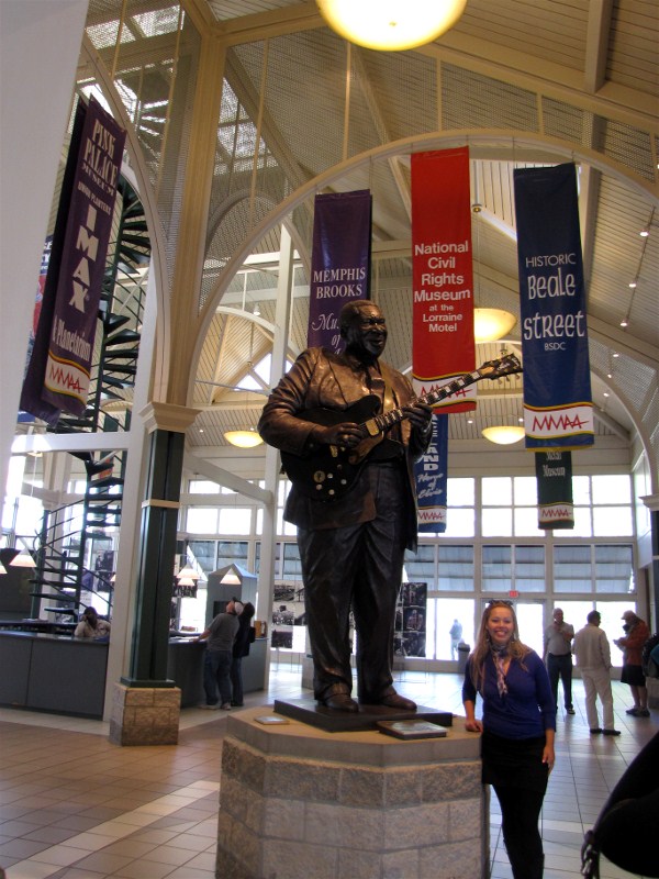 First, the visitors center where there are statues of B.B. King and Elvis. Here is the B.B. King statue with a young lady posing for her friend: