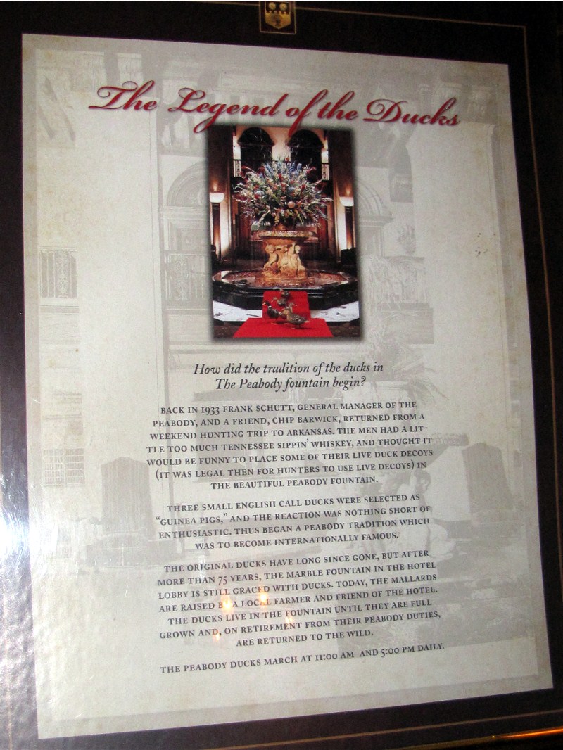 We had heard about the Peabody Hotel's Ducks and decided to see them for ourselves. The Peabody is a couple blocks north of Beale Street.