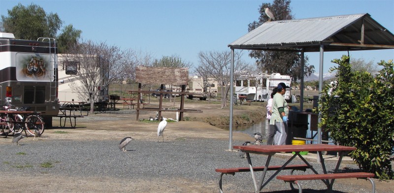 Two of the birds hoping for fish scraps, a Night Heron and a Great Egret.