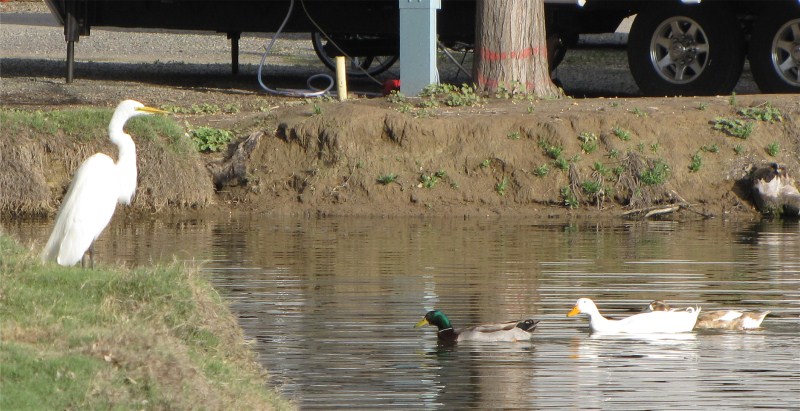 A white-faced ibis was hanging around one day. This area is in its casual range but we haven't seen one in California before, only New Mexico.