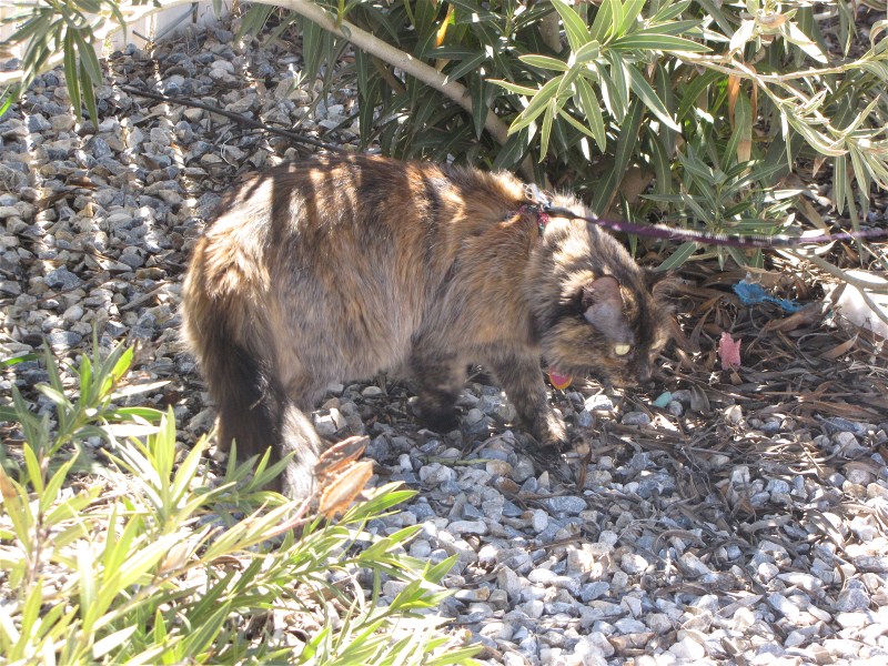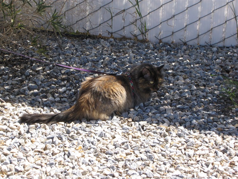 March 31st was hot and sunny so Evita took a long walk but Pandi had to help.