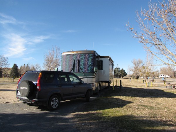 Here is our campsite, one of 42 full hookup sites and you can see the only other camper in the place behind us this day.