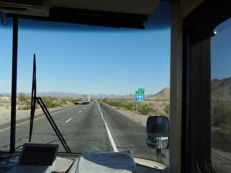 November 1st we left Palm Desert and headed east. Here we are approaching Quartzsite, Arizona.