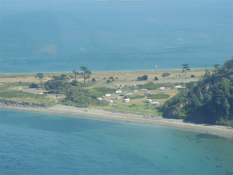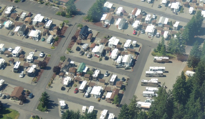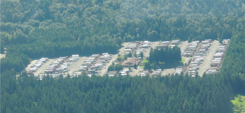 You can see both motorhomes on the far right of the photo with our Chevy Equinox visible but obscured by a tree top.