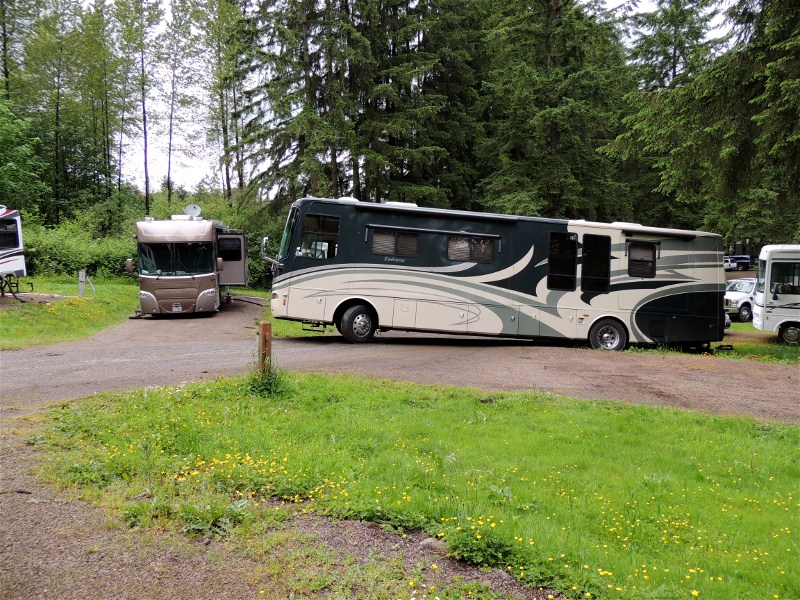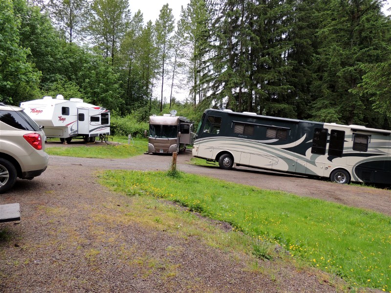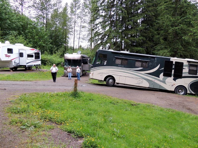 From our campsite this is how it looked. The motorhome had gone over the bank. The sad part is they should have not tried to go into this campsite in the first place since it was not available for them.