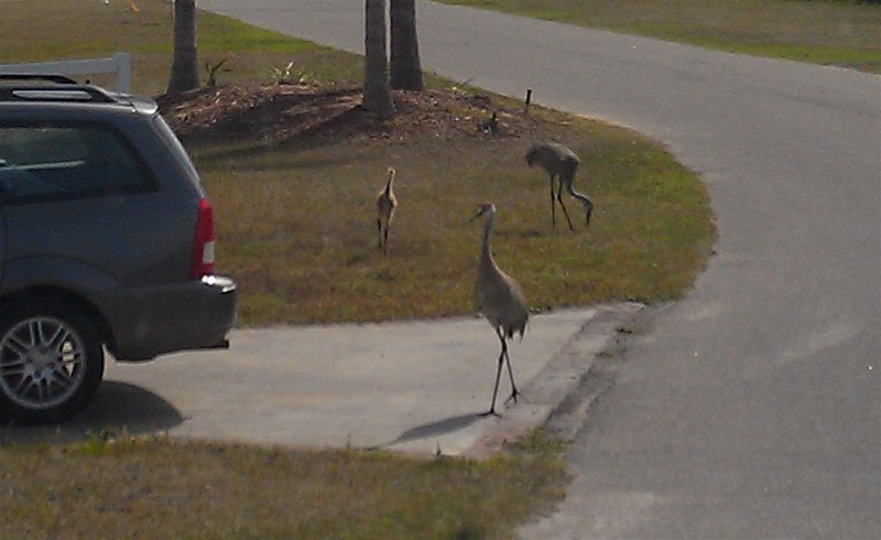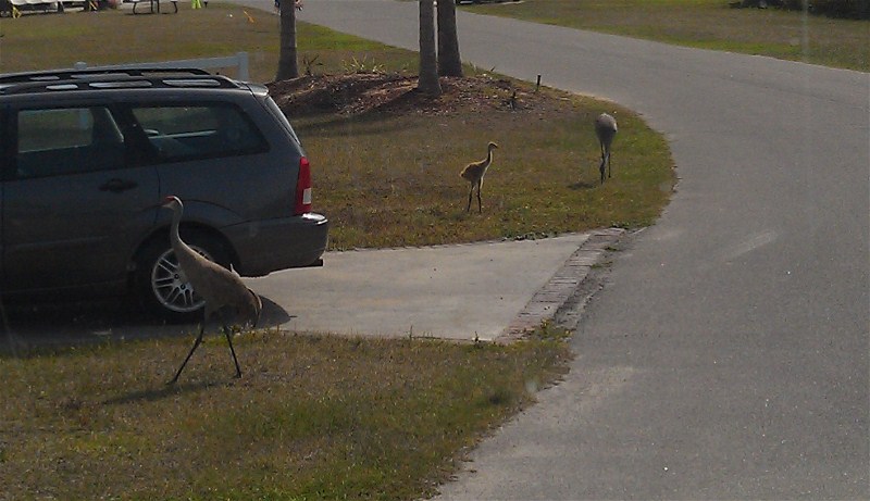 While leaving TT Orlando we had to wait for this Sandhill Crane family to move aside before leaving. These photos are with the phone camera so not the best.