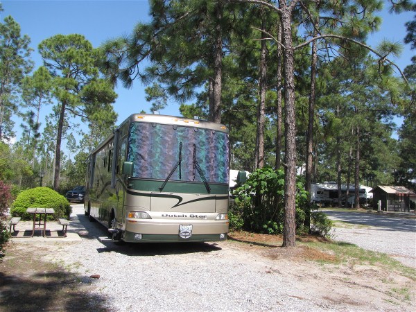The next day, April 1st, we drove 85 miles and into Central Time to Pine Glen Motorcoach and RV Park in Panama City Beach, Florida for two nights. We had last stayed here in November.