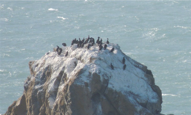 Birds out on a seastack.