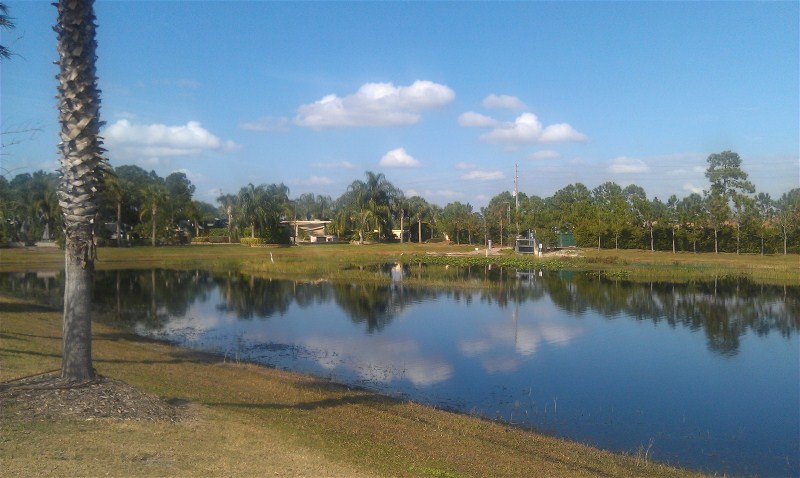 We enjoy walking around the RV Resort because of places like the lake in back.