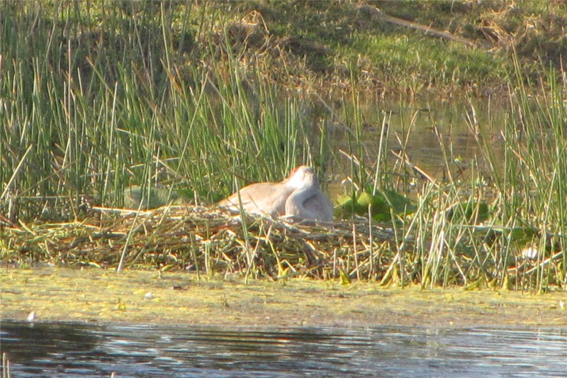 One of the Sandhill Crane pair sitting on the nest in the rear lake.