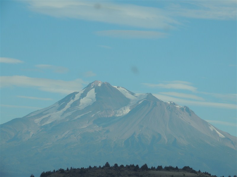 Into California we went. Here is Mount Shasta as viewed through the bug splatters on the windshield. Not a lot of snow left on the mountain.